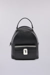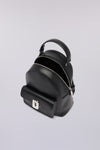 Kleiner Cameo Rucksack aus echtem Leder mit silberfarbigem Verschluss und Gentle Society Logo, Maße 21 x 25 x 11 cm, inspiriert von antiken Kameen mit einem schlichten und raffinierten Design.