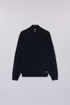 Pullover aus reiner italienischer Schurwolle mit hohem Kragen, halblangem Reißverschluss, regulärer Passform und Leder-Label am Saum.