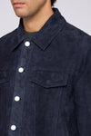 Suede jacket with a denim effect that embodies Trussardi's sophisticated minimalism. The classic cut is enhanced by modern details, such as the Gentle Society jacquard lining and the leather back panel. Perfect when paired with jeans and a shirt for a versatile day-to-night outfit. The genuine leather and attention to detail reflect the brand's signature Italian craftsmanship, expressing timeless quality and style.