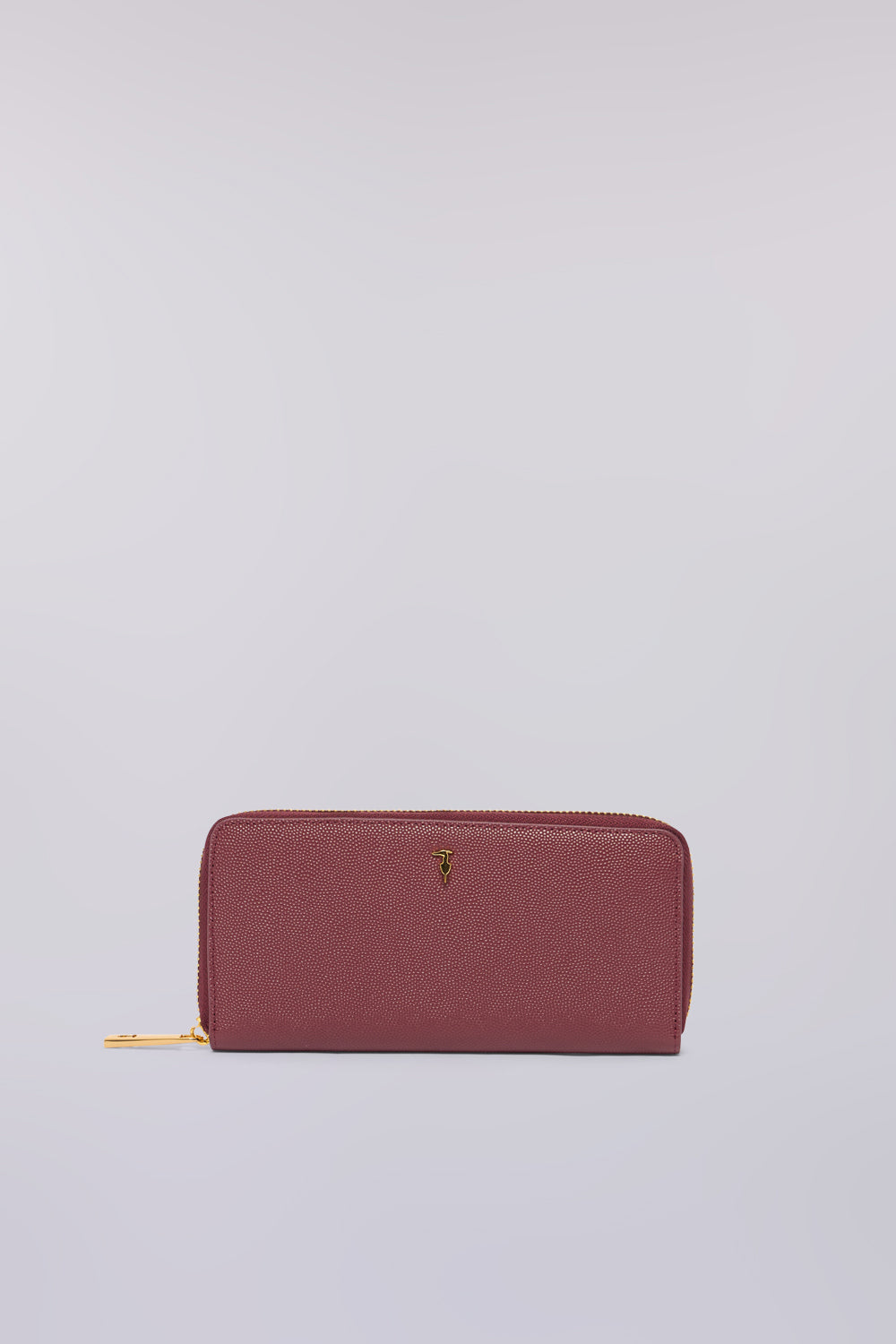 Zip-around wallet in genuine rice-grain leather, featuring interior compartments, coin purse and metal Greyhound detail, measures 18.5 x 9 x 2.2 cm.