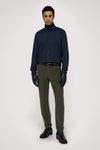 Slim-fit stretch poplin shirt with back side darts, classic collar and Trussardi greyhound embroidery on the breast.