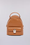 Zaino Cameo small in vera pelle con chiusura argentata e logo Gentle Society, misura 21 x 25 x 11 cm, ispirato ai cammei antichi con un design essenziale e raffinato.