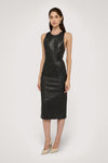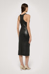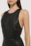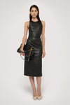 Sleek halterneck dress in metal-free nappa leather, featuring a figure-hugging silhouette and back zip closure, crafted from premium genuine leather.