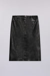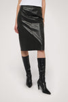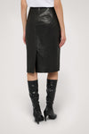 Metal-free genuine leather pencil skirt featuring a centre back slit, inner lining and slim fit.