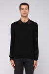 Long-sleeved stretch viscose polo shirt